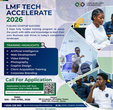 The Lady Margaret Foundation (LMF) invites you to join Tech Accelerate 2026 — a 3-day intensive digital skills program designed to equip youth with practical, income-generating tech skills.